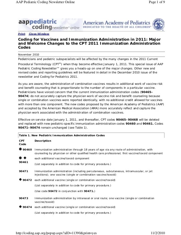 Supercoder is powered by the experienced coding and compliance professionals at tci. Code 90461 is additionally reported for the counseling associated with each additional component of any combination vaccine or toxoid. Code 90460 is reported once for the first component of each vaccine or toxoid administered by any route.